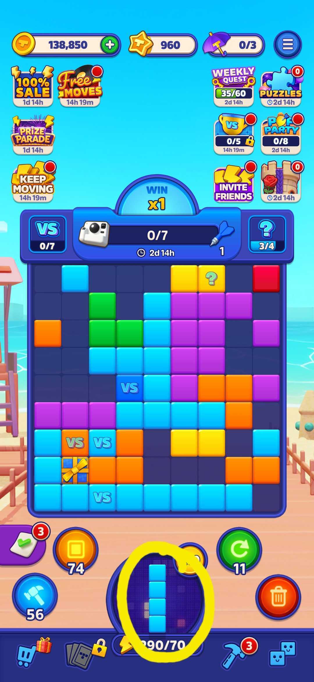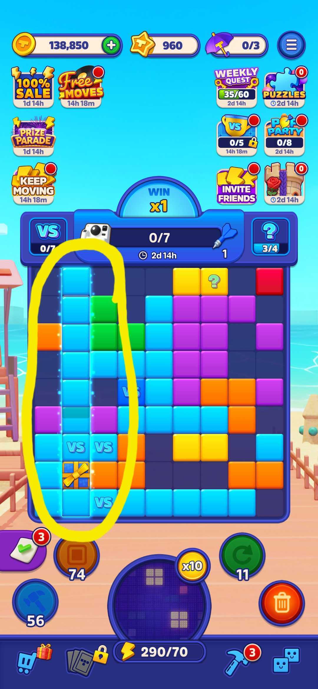 Example: If your mission is “Clear 20 Cyan Blocks", the piece that completes the row or column must be cyan. When you place a cyan piece and complete the line, the entire row or column will turn cyan and count toward your mission goal.